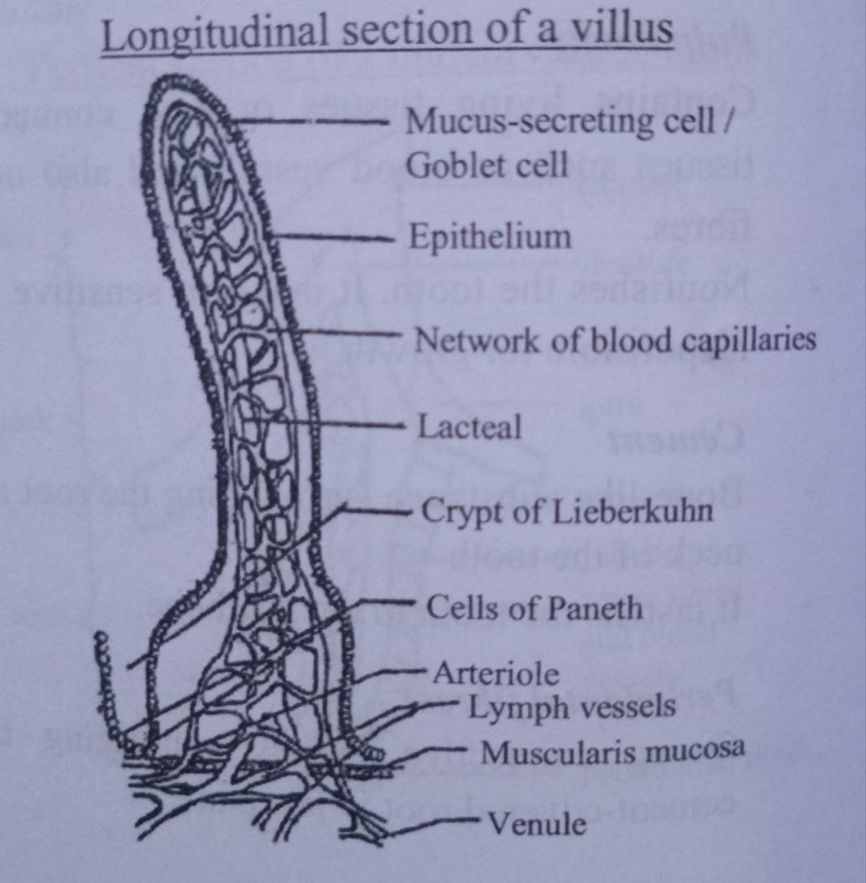 (c)Make a diagram 8cm – 10cm long of a longitudinal section of a villus and label fully.