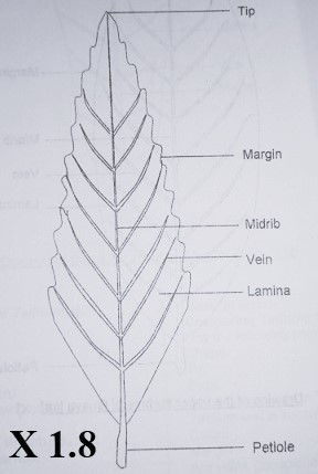 Remove one of the leaves of specimen C and make a drawing 8cm – 10cm long of its upper surface.