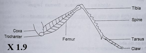 Make a drawing 8cm – 10cm long of the lateral view of one of the hind legs of specimen E.